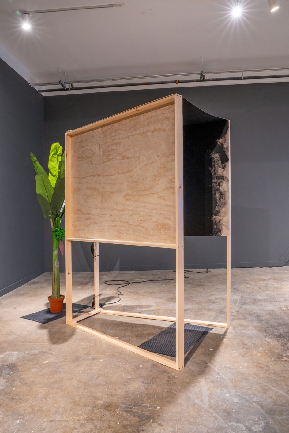 Hybridizing museological display strategies with the vernacular of an in-situ production environment, the exhibition presents works from fourteen contemporary artists working in sculpture and media alongside a collection of production objects culled from the cinema and gaming industries. These non-art objects, drawn from the interstitial spaces of different production methodologies, map the often-unseen connections between technologic determinism and visual aesthetics.